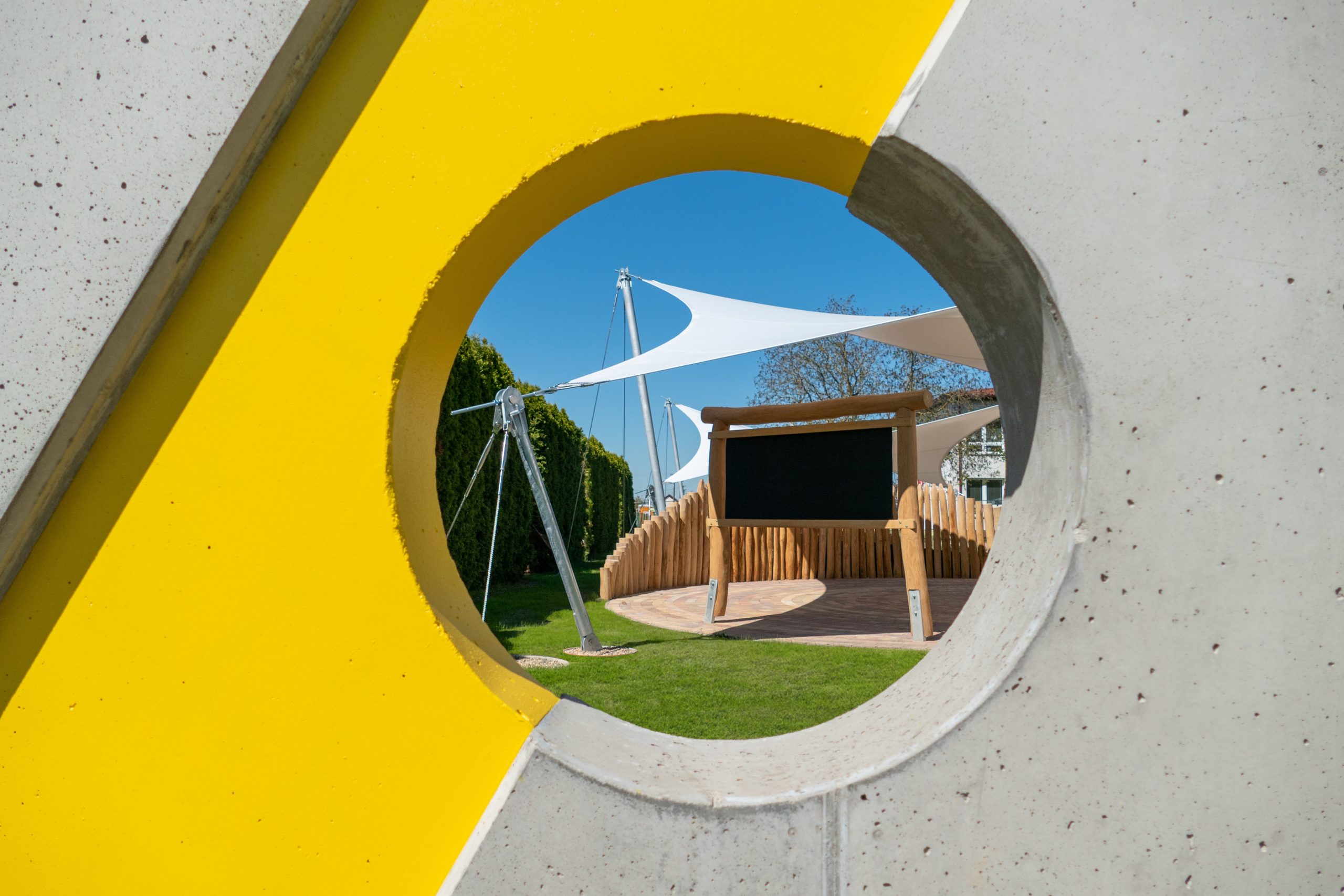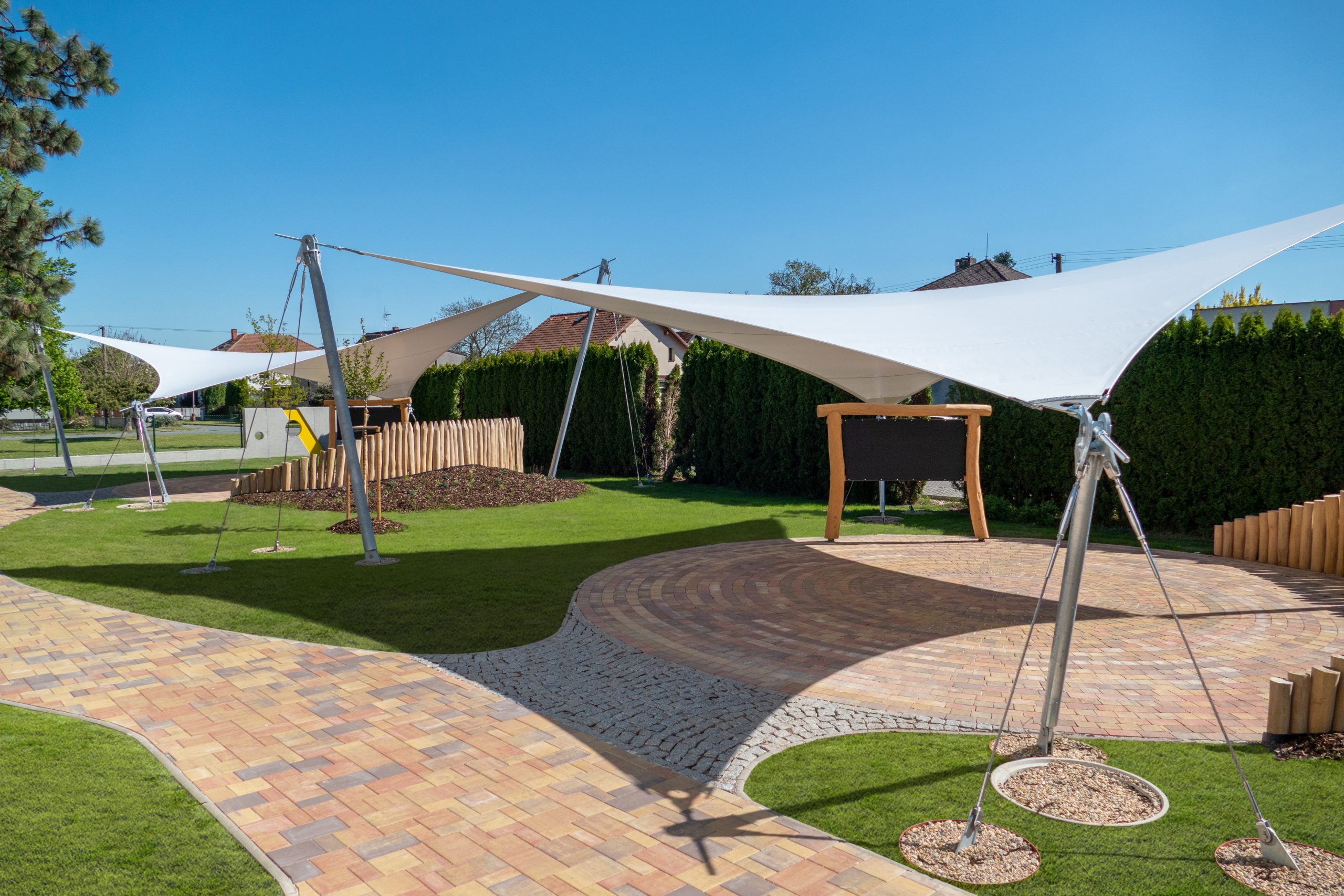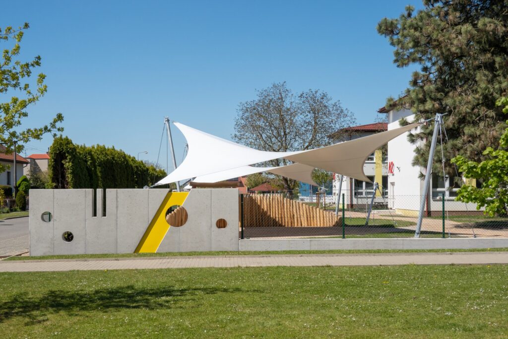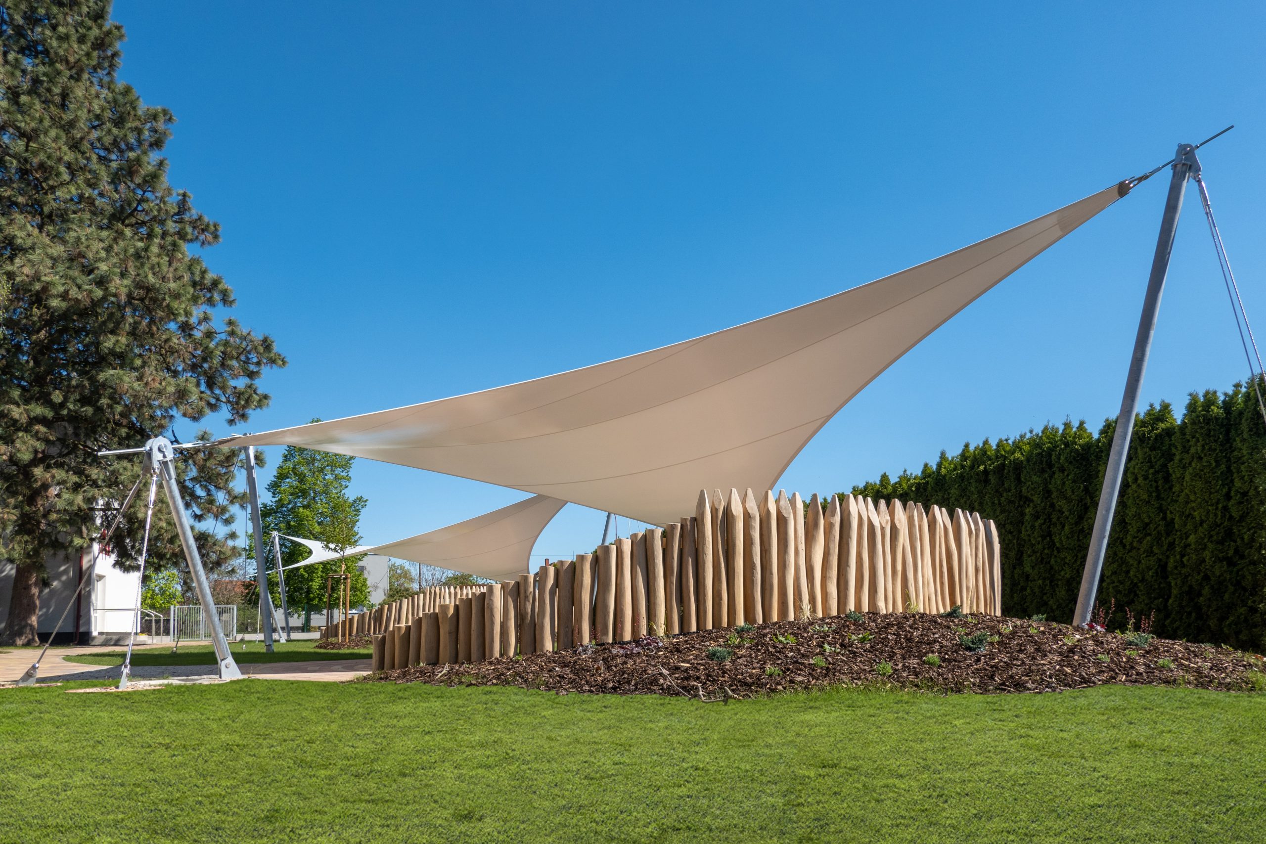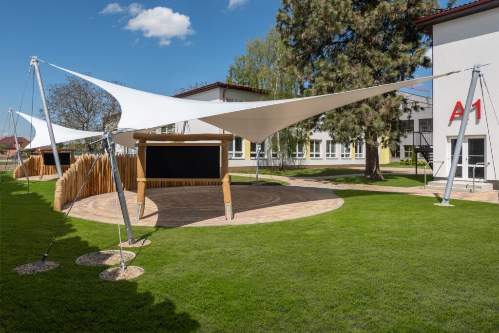 Součástí stavby jsou i tři přírodní venkovní učebny kryté membránovým zastřešením tzv. předepnutá textilní konstrukce na ocelových sloupcích a nerezových táhlech.