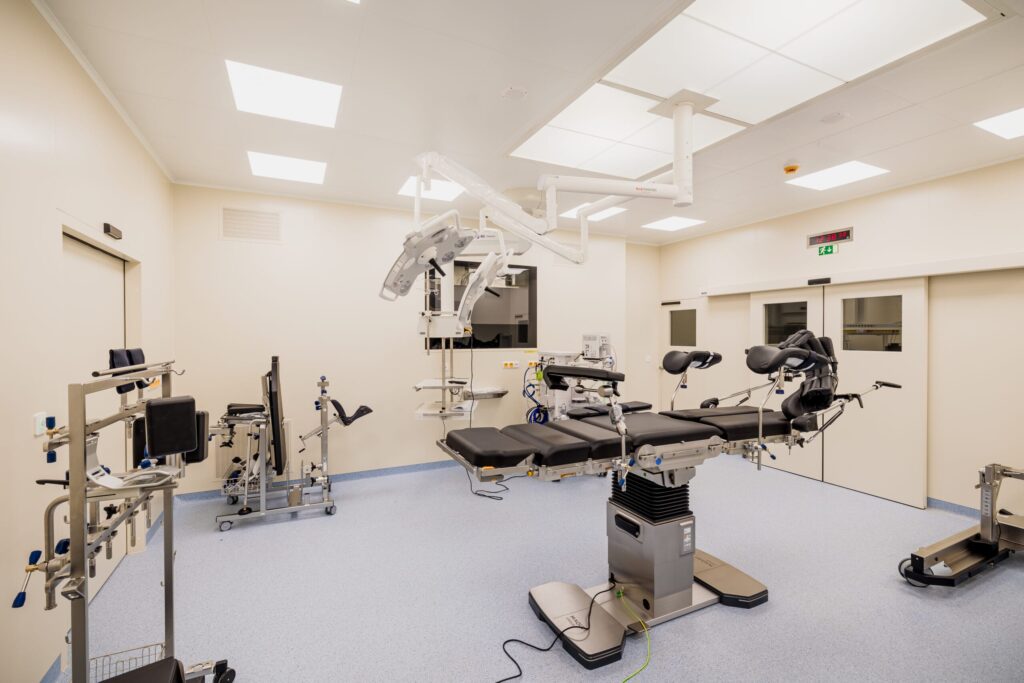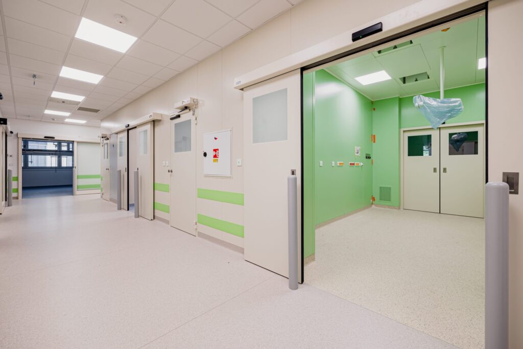 Realizace stavby obsahovala vybudování nástavby 2.NP s  operačními sály nad stávajícím objekt laboratoří v 1.NP. Pro přístup ze stávajícího objektu nemocnice byl vybudován nadzemní uzavření nadchod.