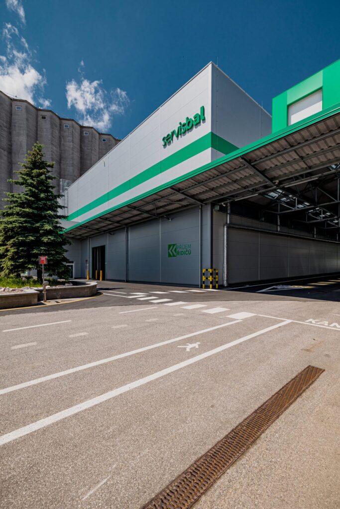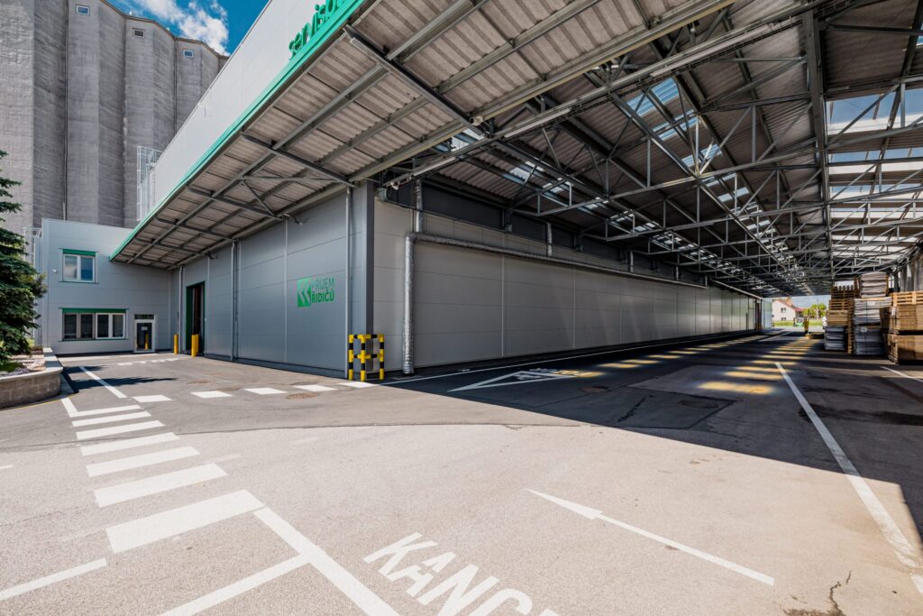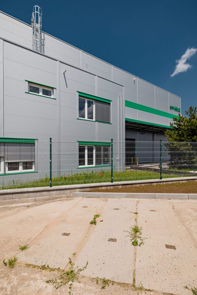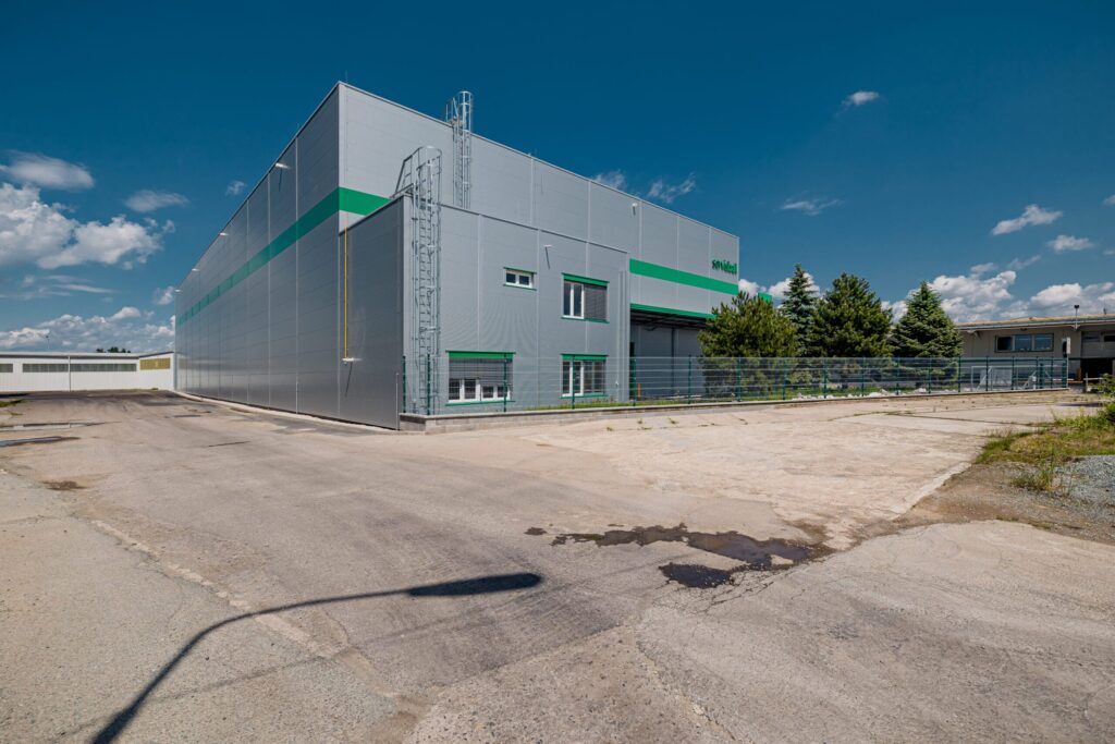 Nová montovaná železobetonová hala je dvoulodní, opláštěná pomocí sendvičových panelů se soklovými panely.