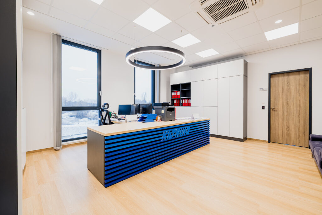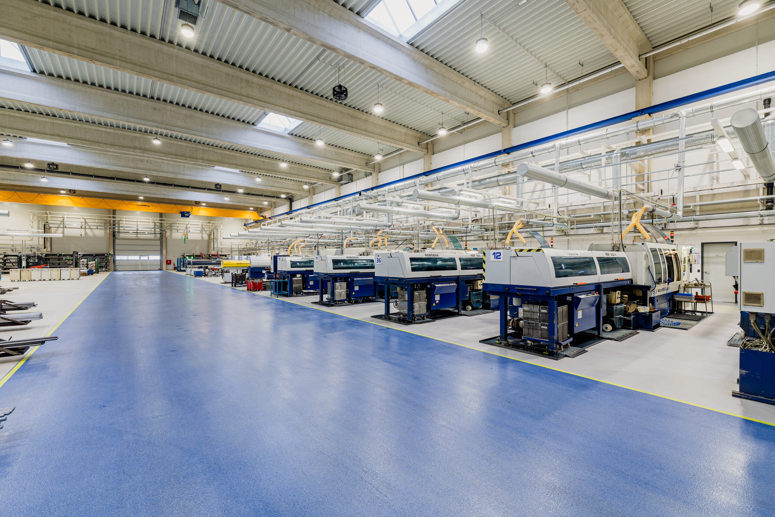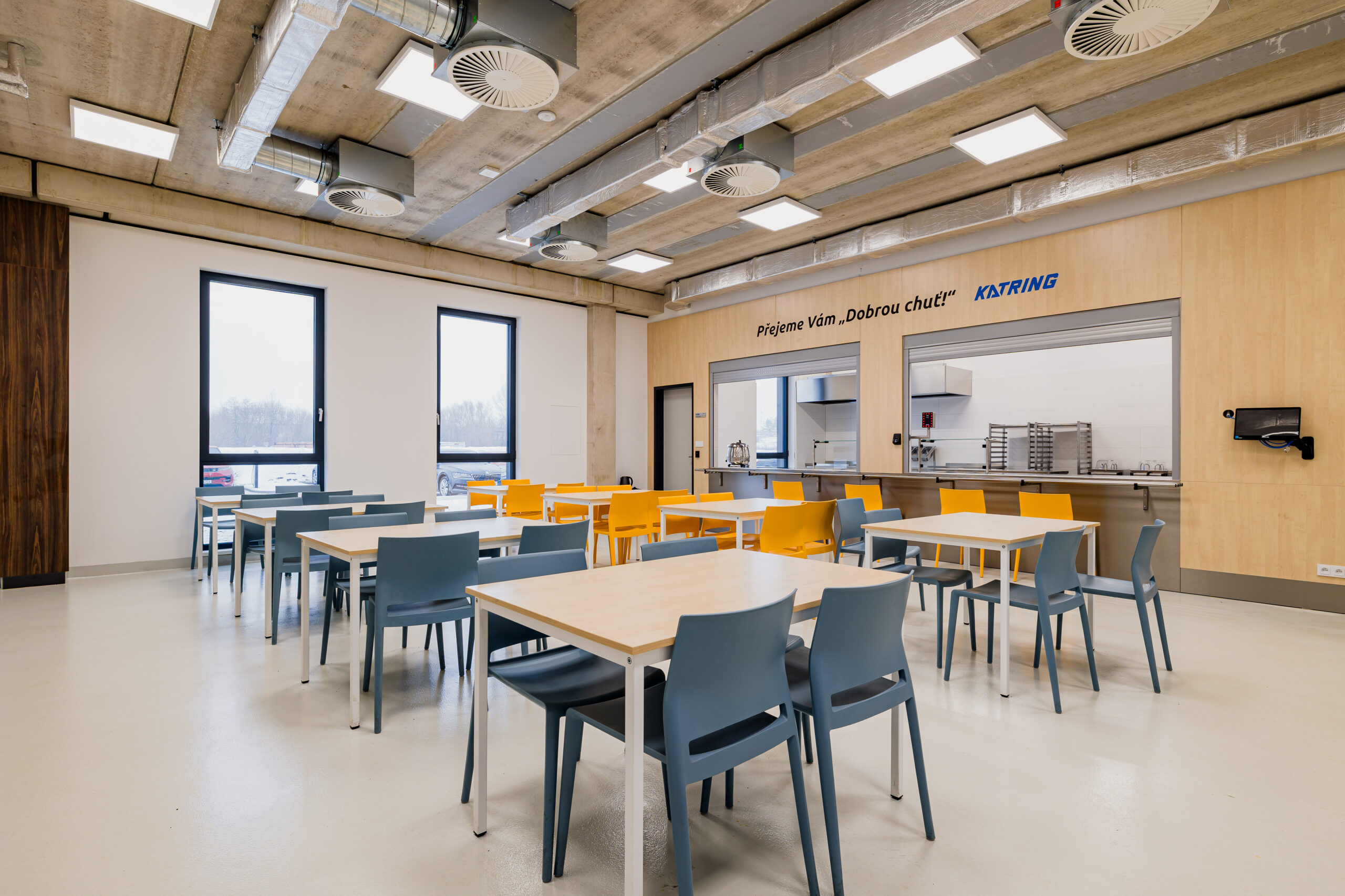 Stavba je koncipována jako trojlodní, kde středová část největší je výrobní, přední loď je administrativní část a zadní loď je technologická část.