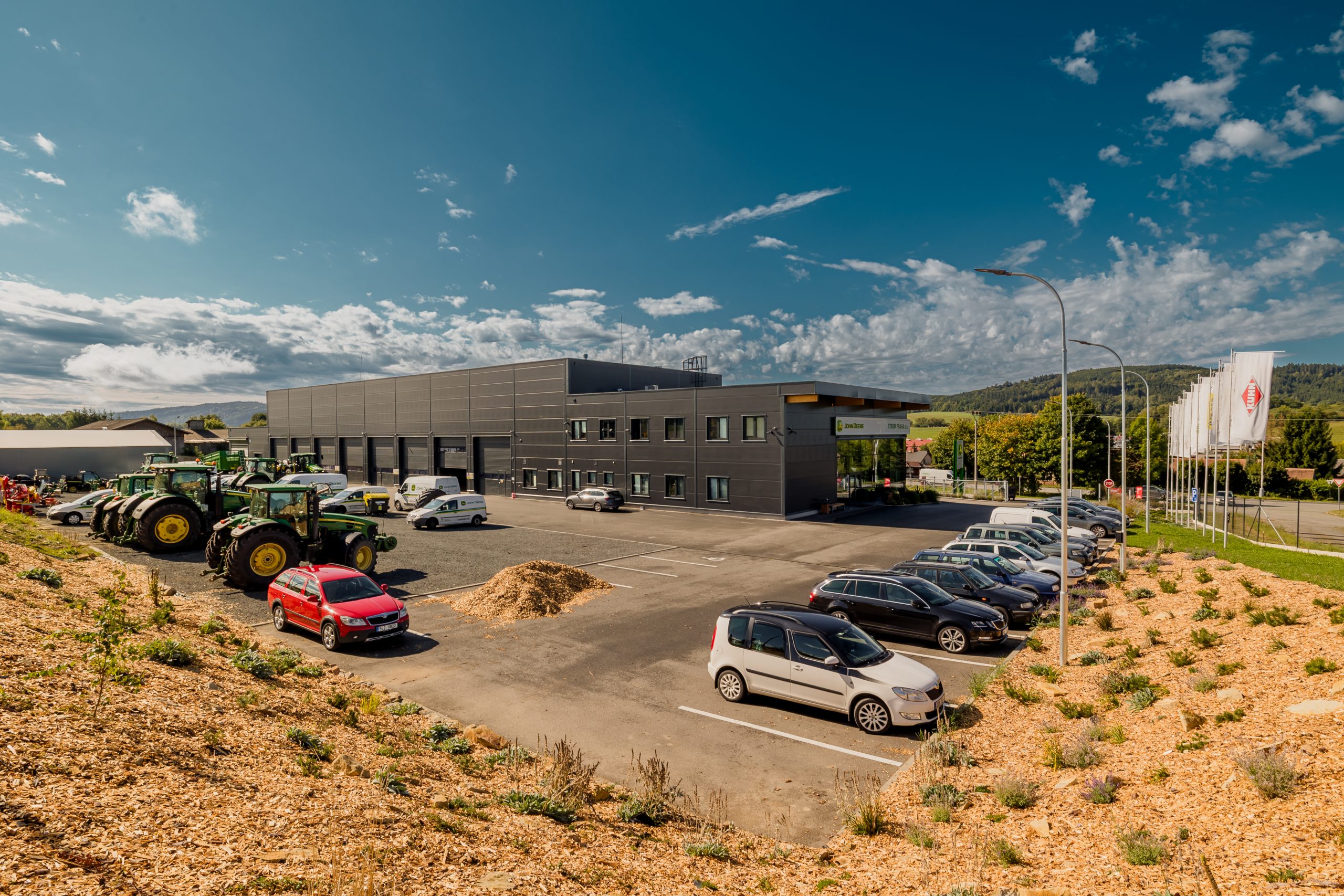 Novostavba prodejního a obchodního střediska distributora strojů výrobce JOHN DEERE pro oblast Ústeckoorlicka.