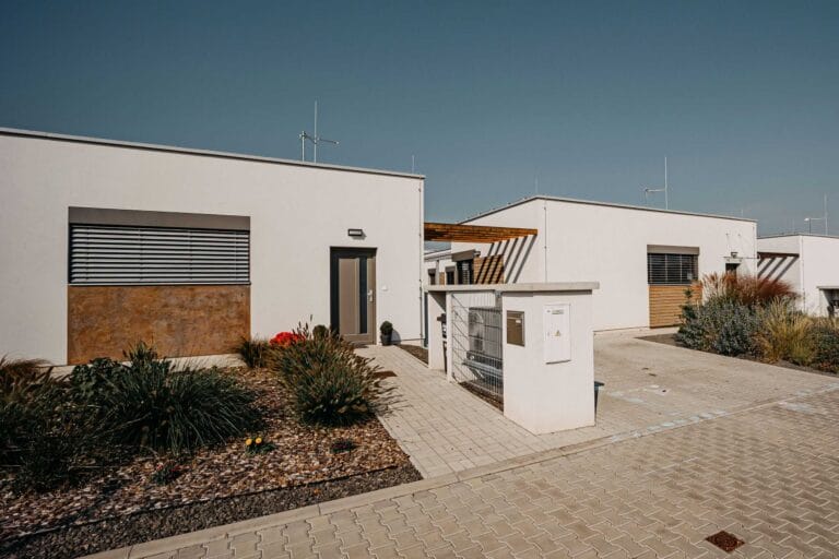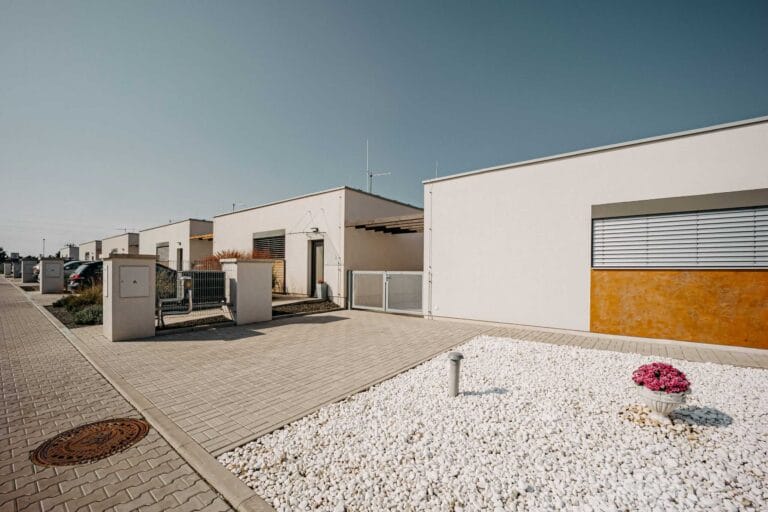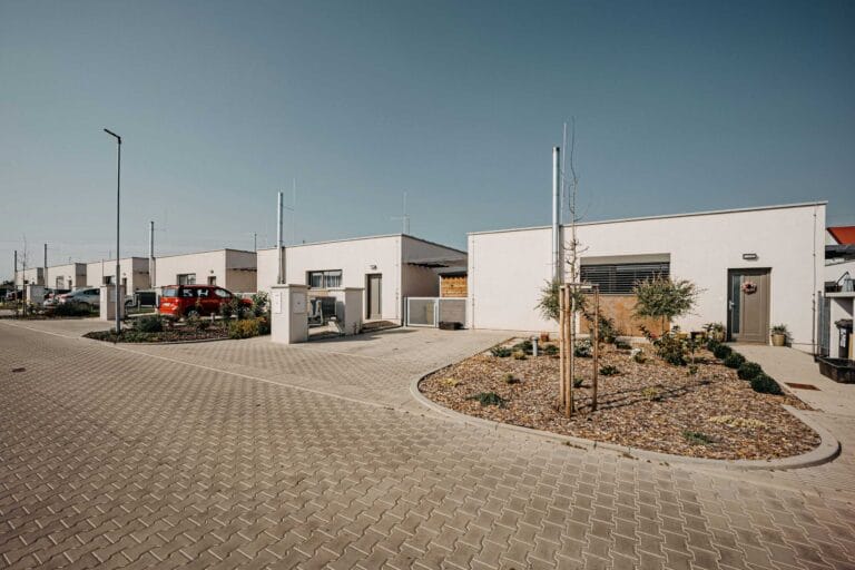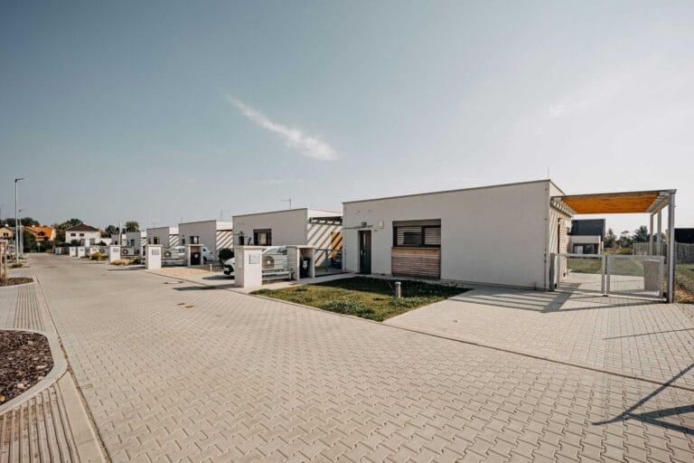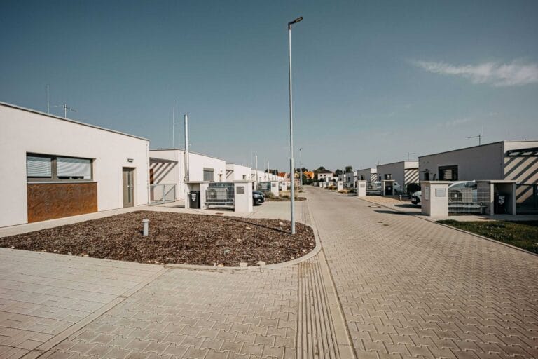 Novostavba 20 řadových domů a 10 samostatně stojících rodinných domů.