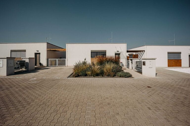 Konstrukce domů jsou z cihelných bloků POROTHERM a monolitických železobetonů. Jedná se o nízkoenergetické stavby s vytápěním pomocí tepelných čerpadel. Součástí stavby bylo provedení rozsáhlé infrastruktury – komunikací, kanalizačních a vodovodních sítí. Jednotlivé domy byly provedeny podle individuálních požadavků konečných uživatelů.