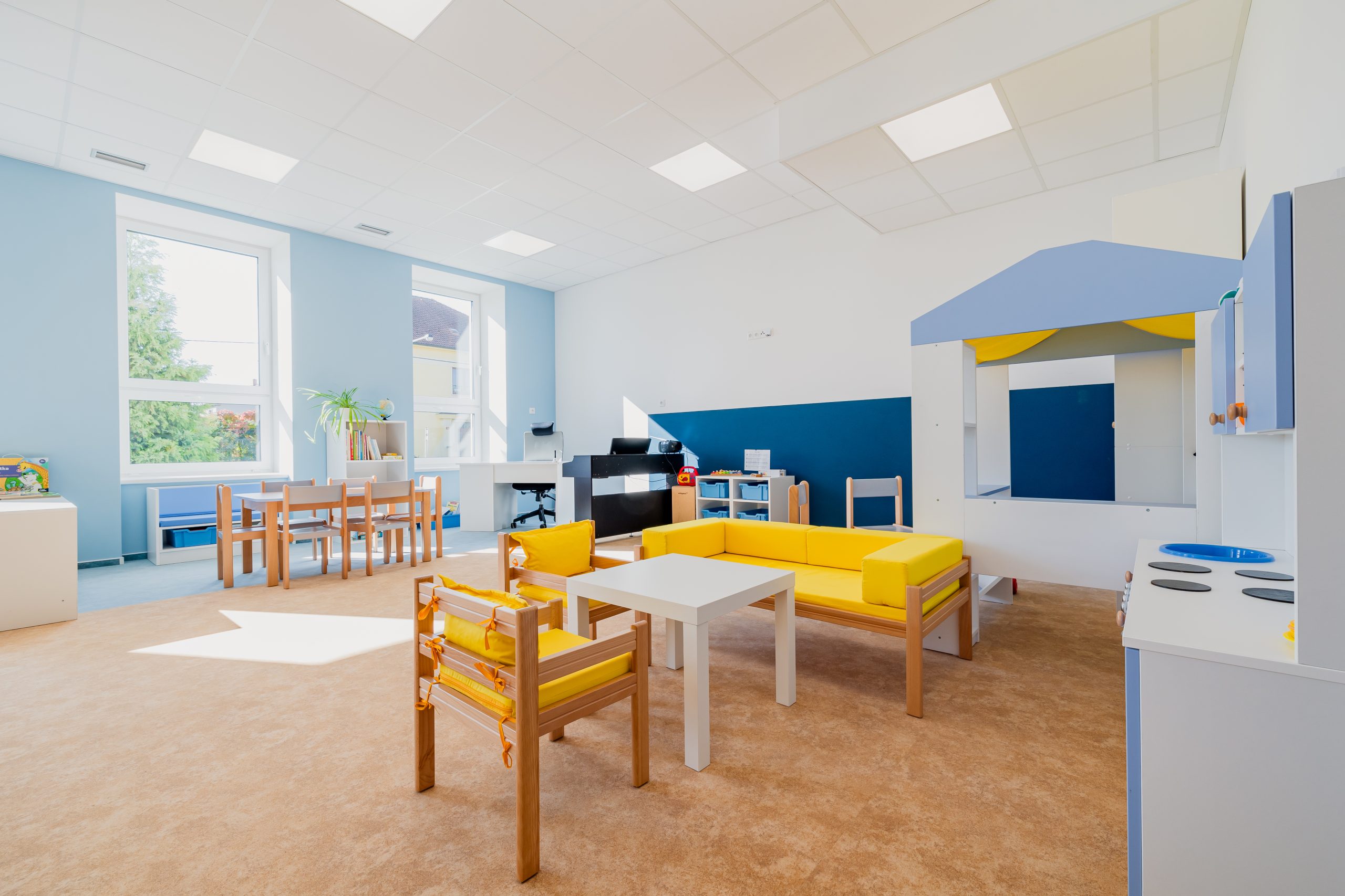Kompletní rekonstrukce historické budovy Mateřské školy, zahrnující zateplení obvodového pláště včetně nových fasád a výměny střešního pláště, výměny stávajících výplní otvorů, úpravy vnitřních povrchů, výměny vnitřních instalací vody, kanalizace a elektroinstalace a nové rozvody slaboproudé elektroinstalace a vzduchotechniky.
