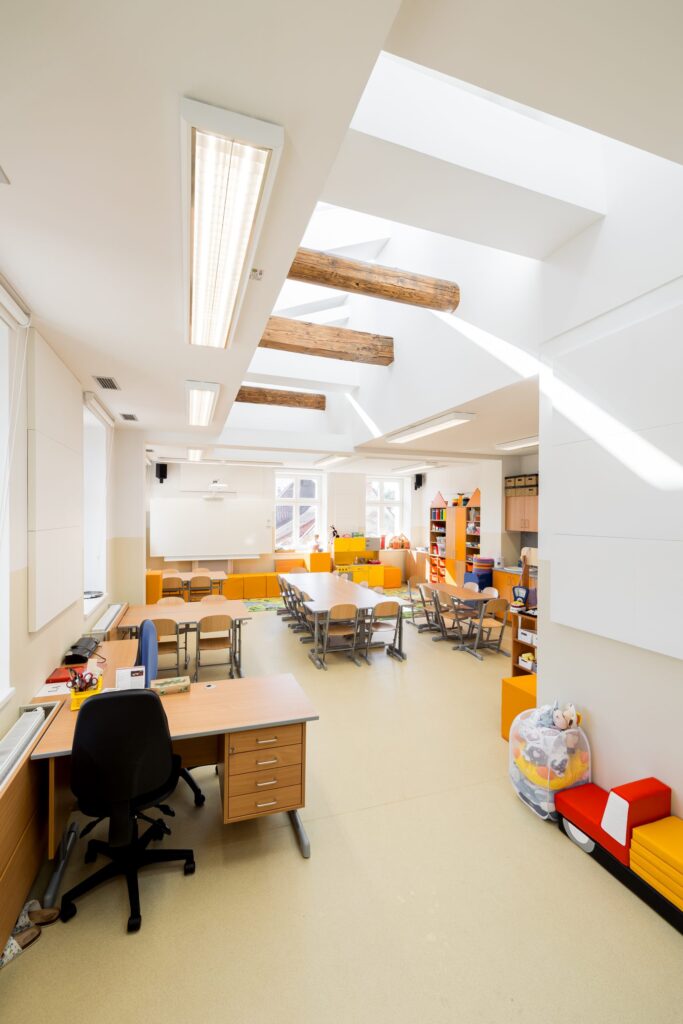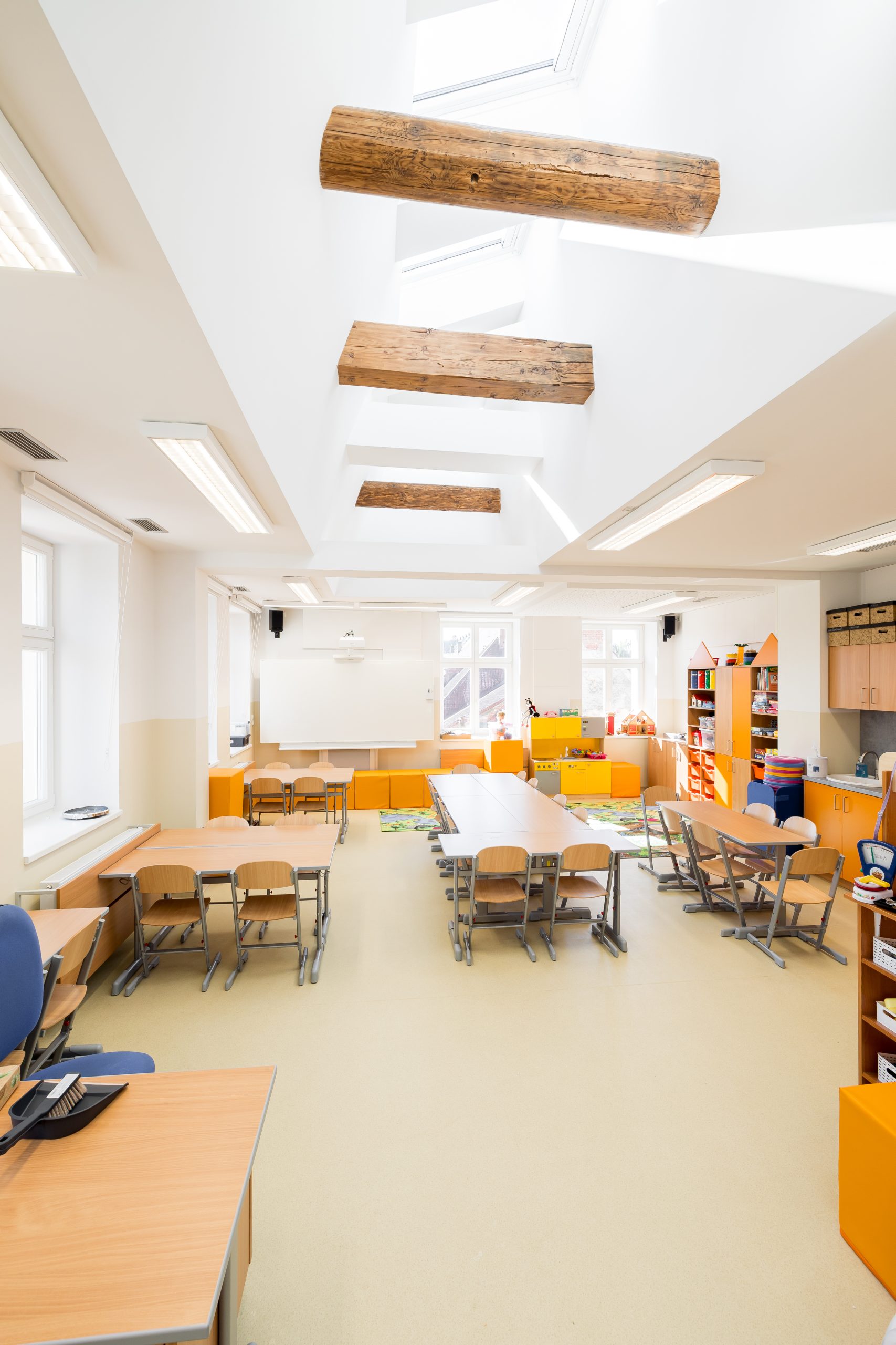 Jedná se o vestavbu tříd a družiny na stávající půdě objektu školy.