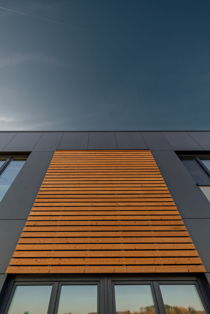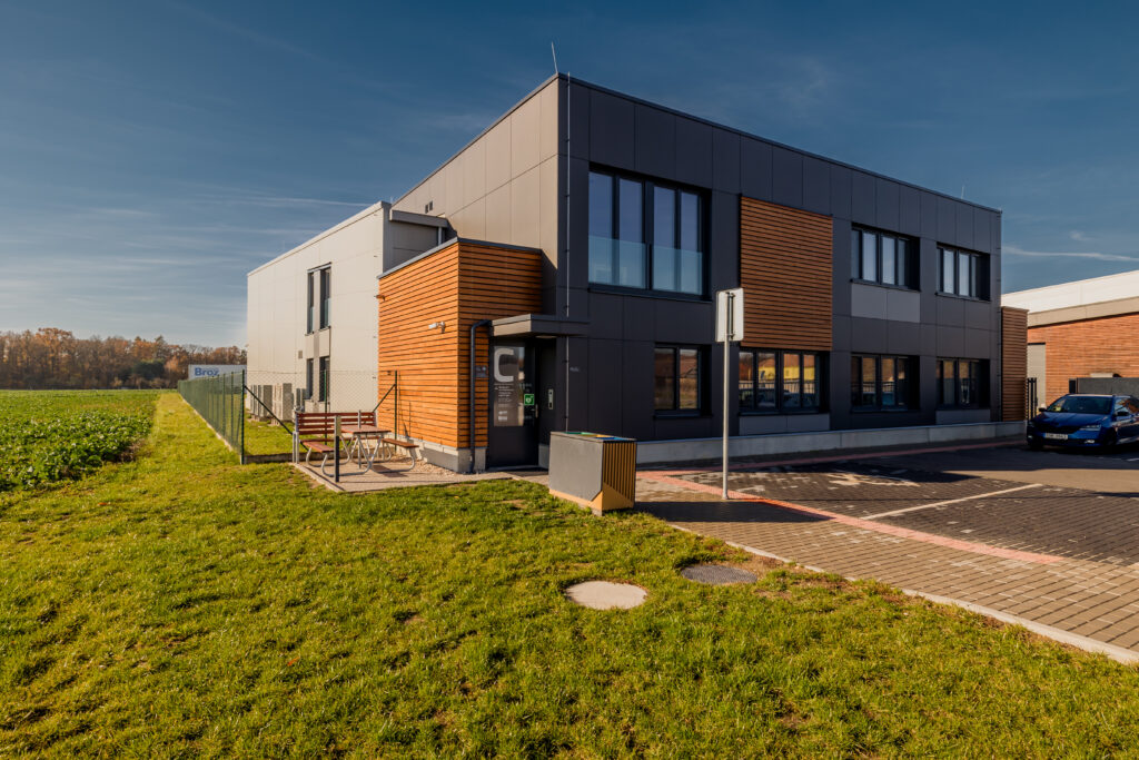 Jedná se o konstrukci z montovaného železobetonového skeletu v kombinaci s ocelovou konstrukcí. Vnější opláštění budovy tvoří sendvičové panely Kingspan a Benchmark a dále fasádní desky Equitone s dílčím dřevěným obložením.