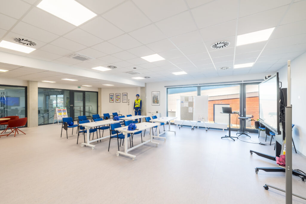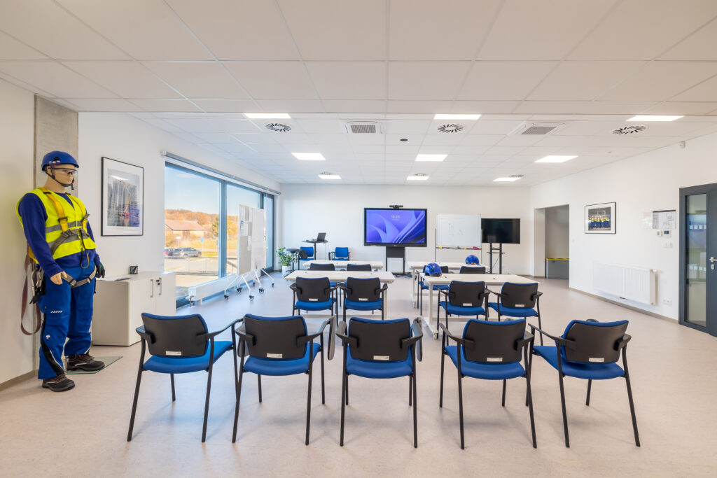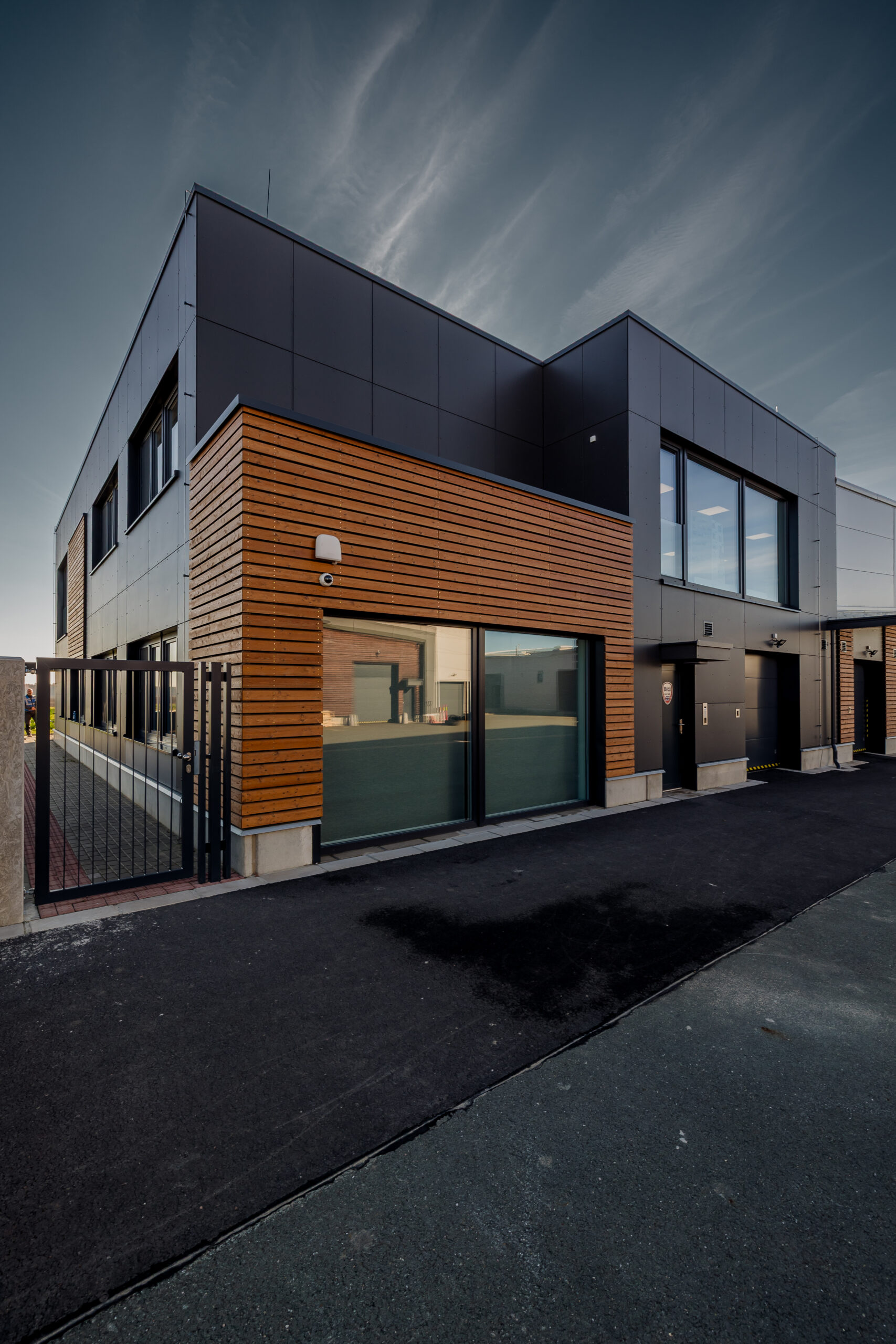 Novostavba školícího střediska s administrativní a skladovou částí.
